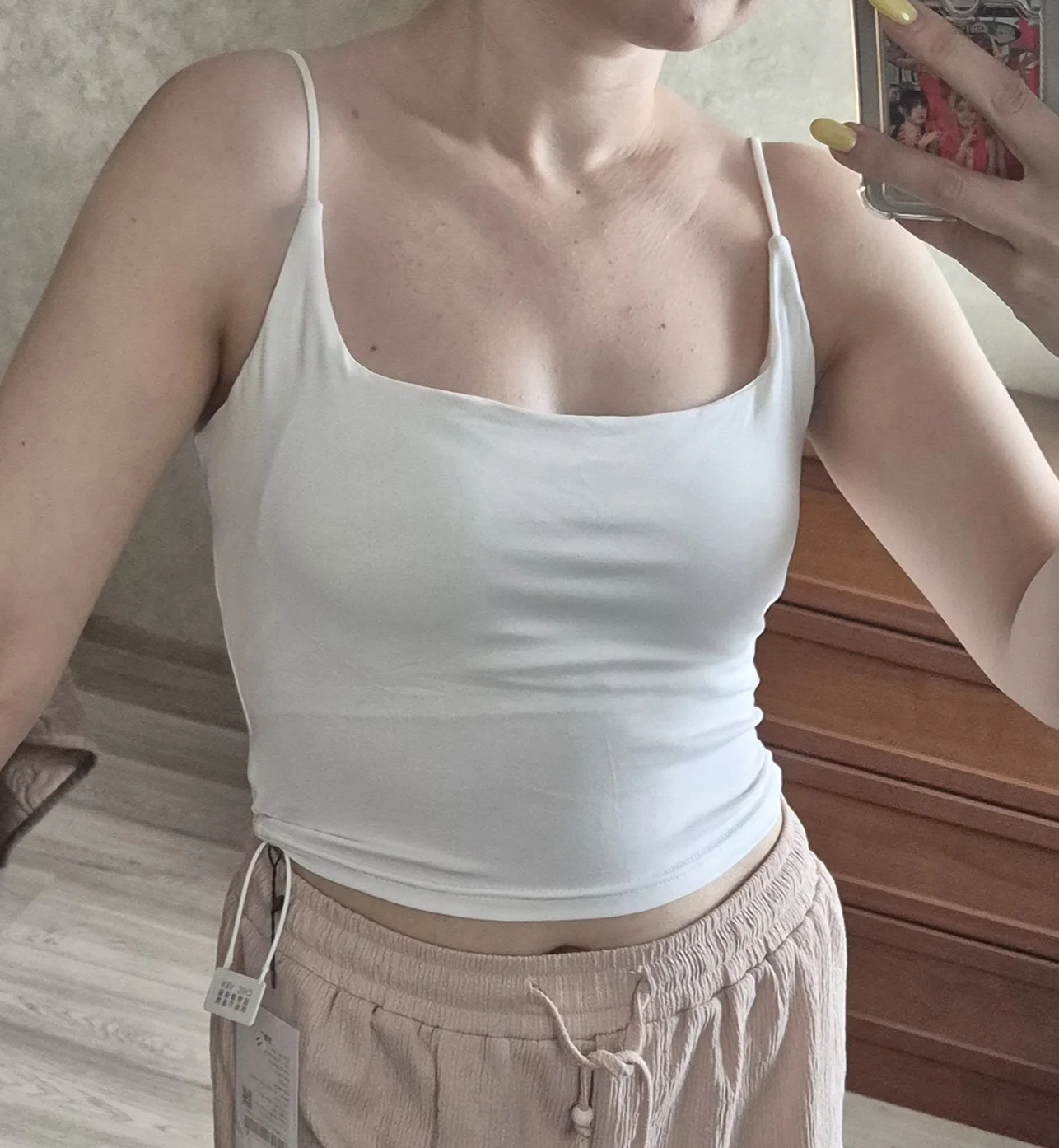 Excellent top!! I wore it throughout my vacation in temperatures of +30, it's very comfortable, soft, perfectly accentuates the figure, but at the same time doesn't squeeze anywhere – wearing it is very comfortable.