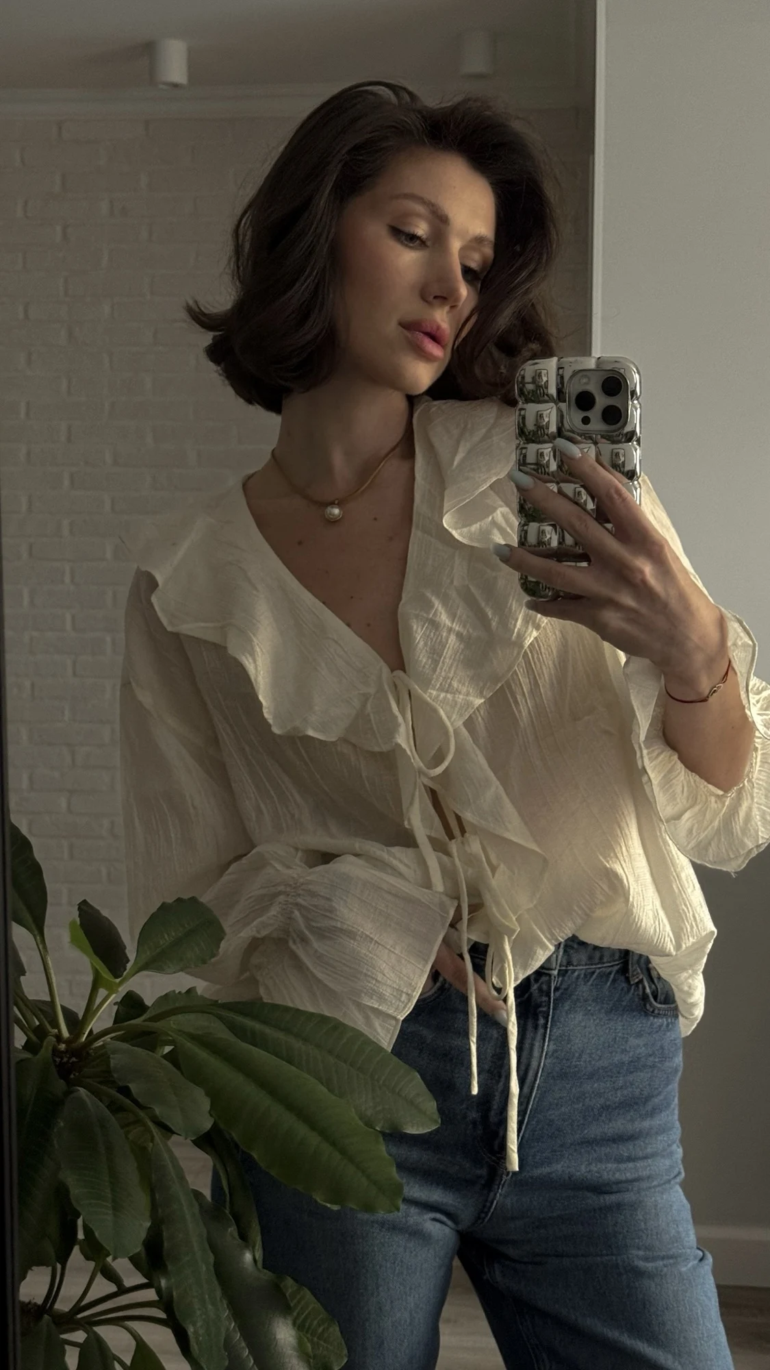Rupert Botsford I'm taking the second one, the first one is light. The blouse is amazing, trendy, super. The black one is thicker than the light one.