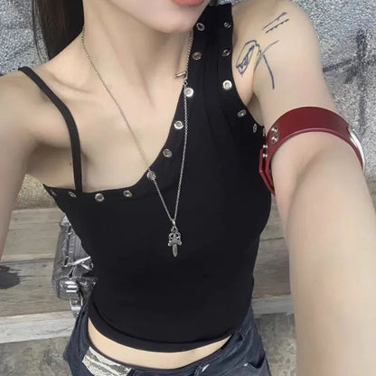 Sleek one-shoulder crop top with a fitted, ribbed texture that flatters the silhouette. Crafted from high-stretch fabric for a snug yet comfortable fit. A bold Y2K-inspired essential that pairs effortlessly with jeans or mini skirts for a statement streetwear look.