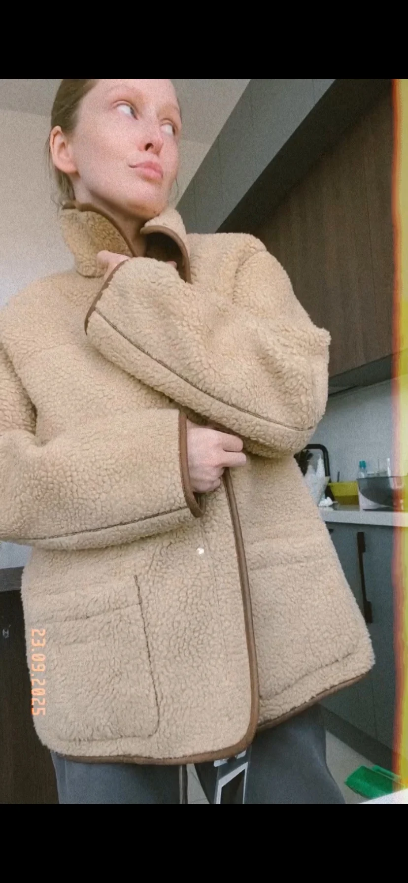 A soft suede-touch jacket designed for warmth and versatility. This reversible style features a relaxed fit, turn-down collar, and subtle lace-up and pocket details. Cozy yet structured, it’s a perfect choice for cool autumn and winter days.
