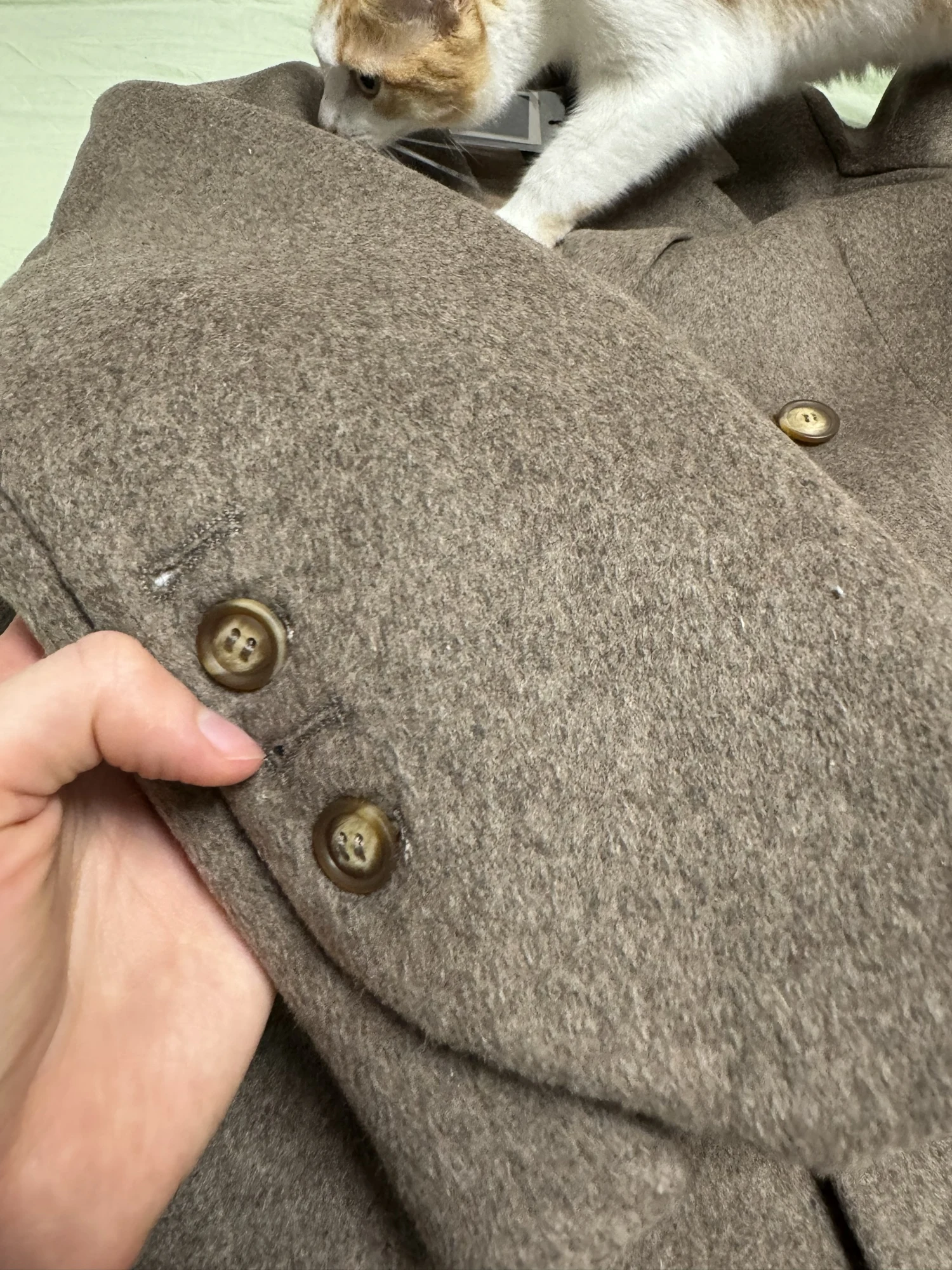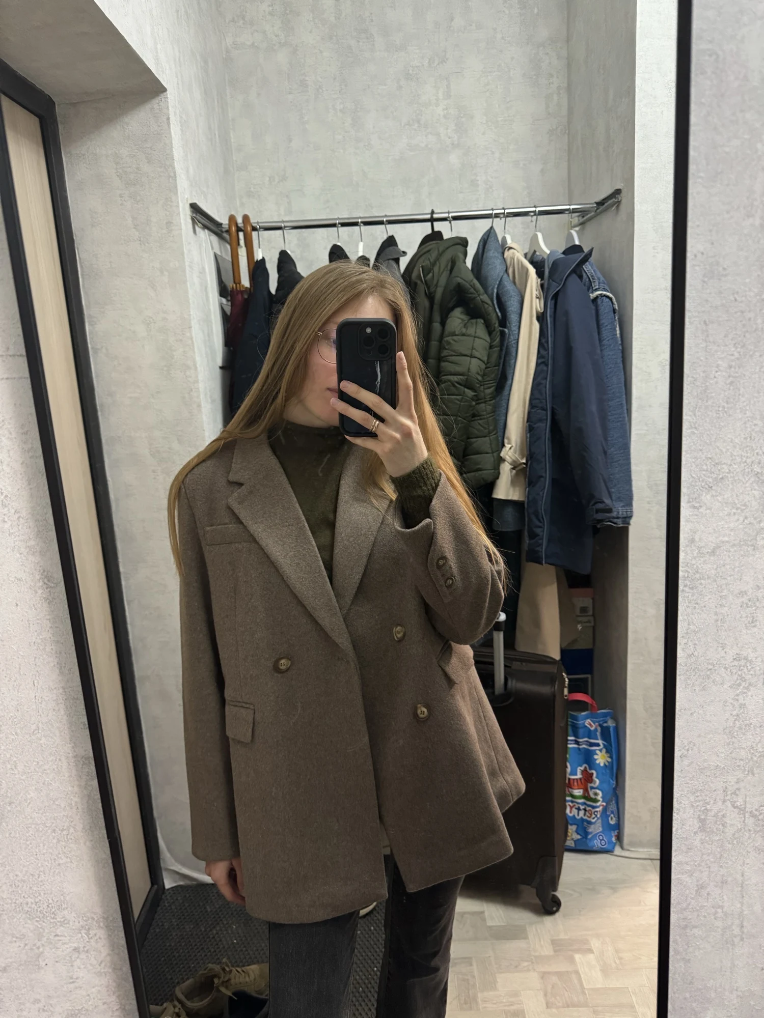 The coat is oversized.